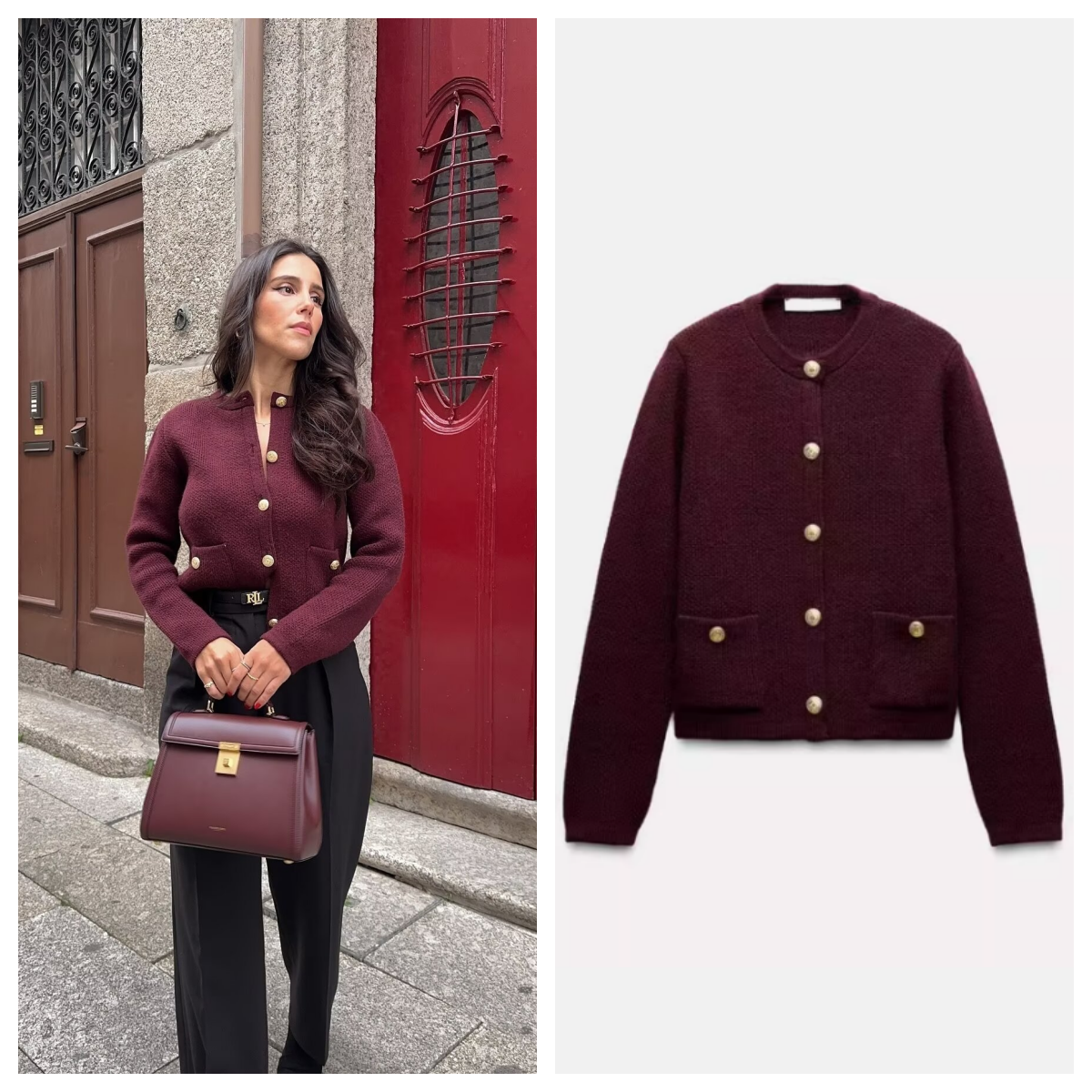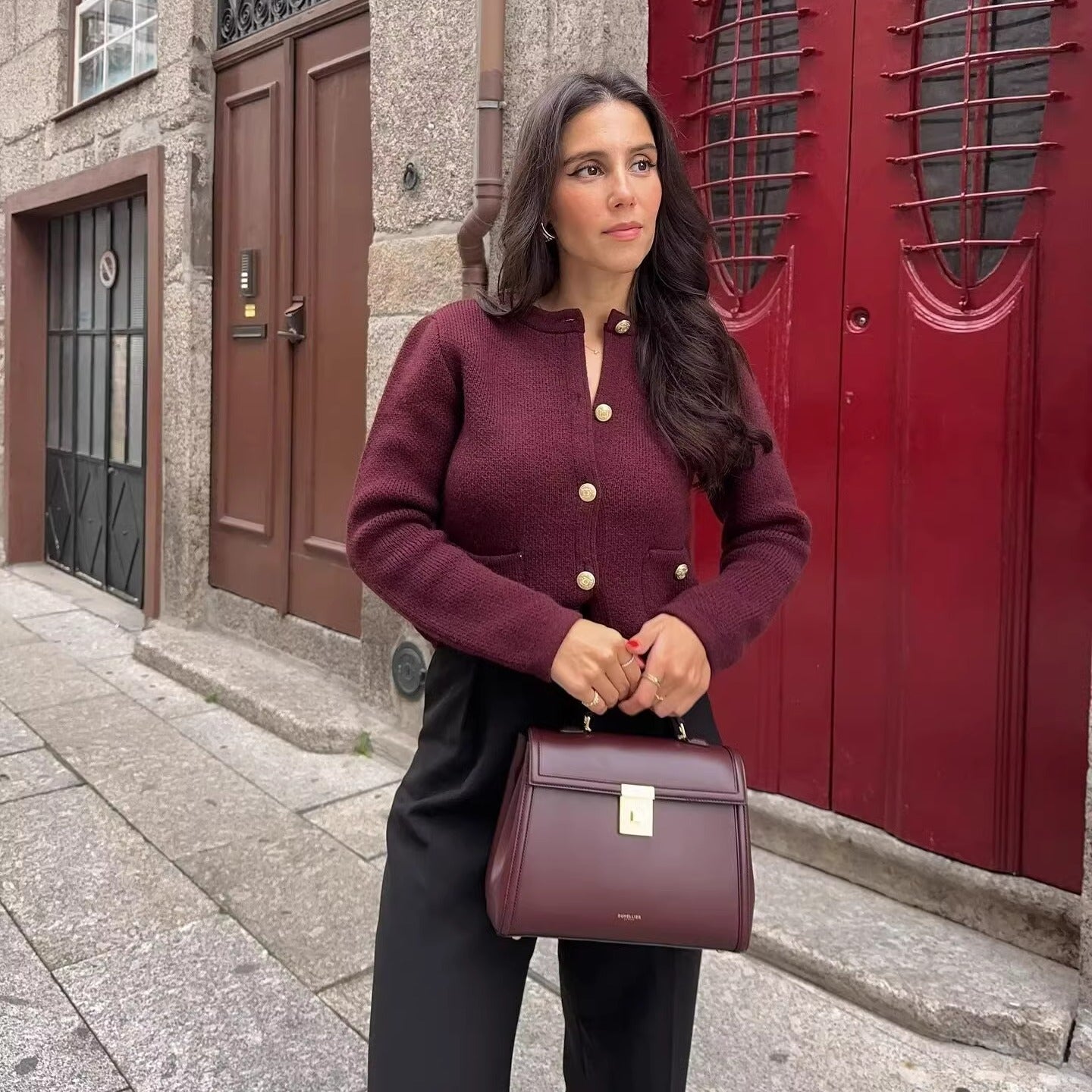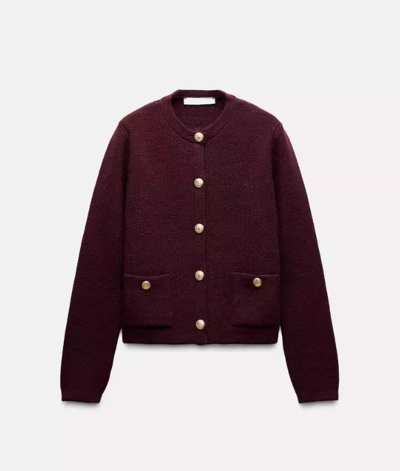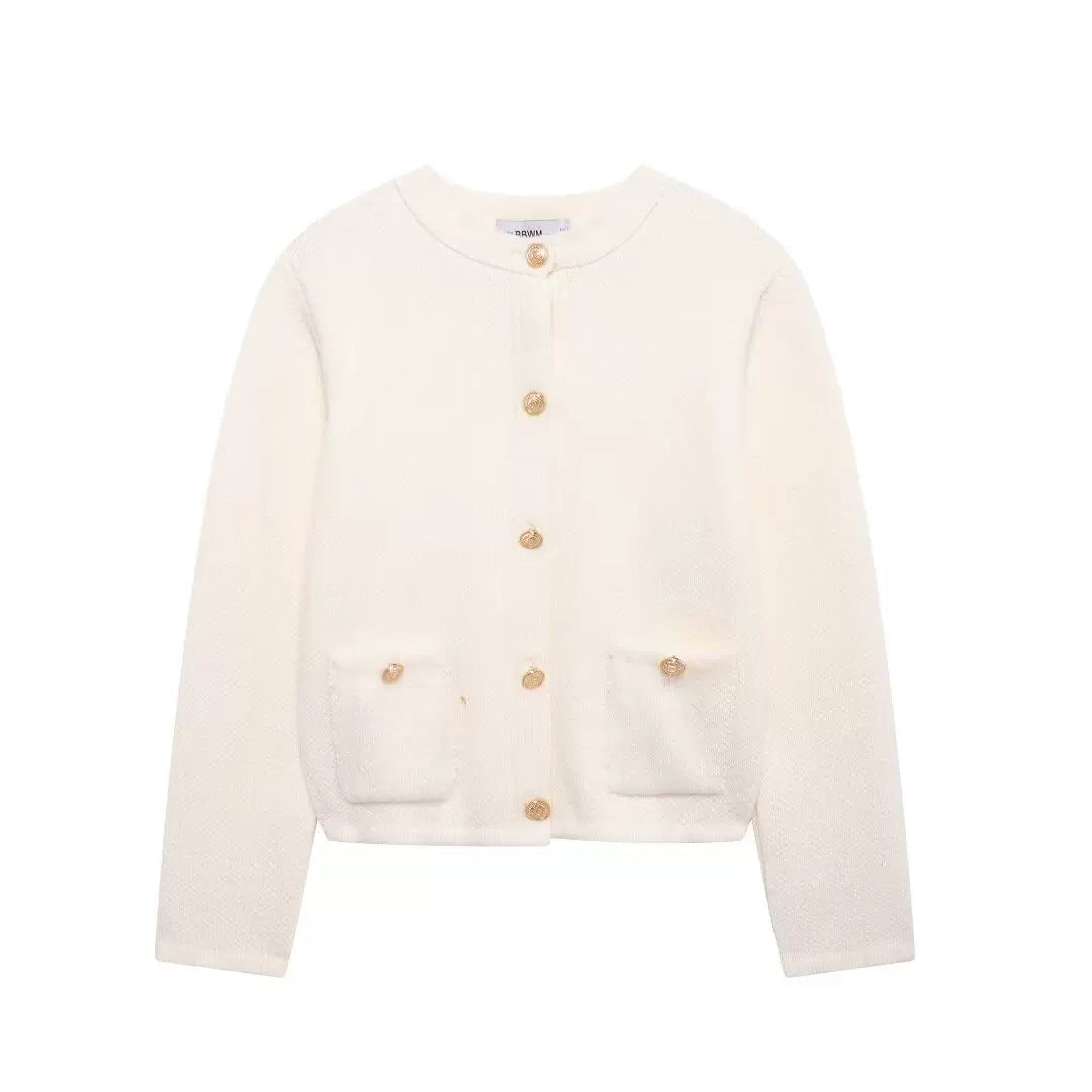ZA Payız/Qış Yeni Qadın Geyimləri Avropa və Amerika Üslubunda Qızılı Düyməli Uzunqol Dəyirmi Yaxalı Qısa Örgü Kardiqan 6427144