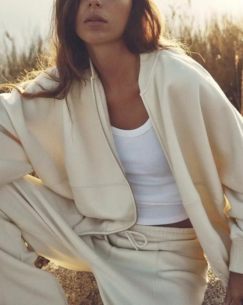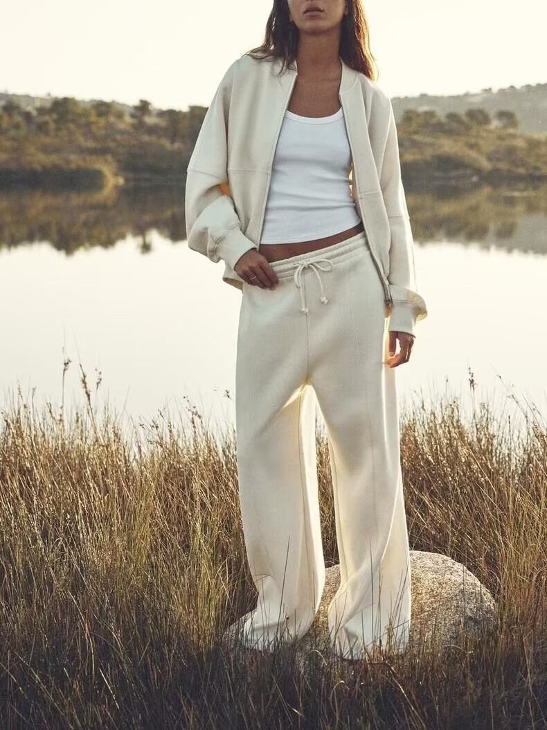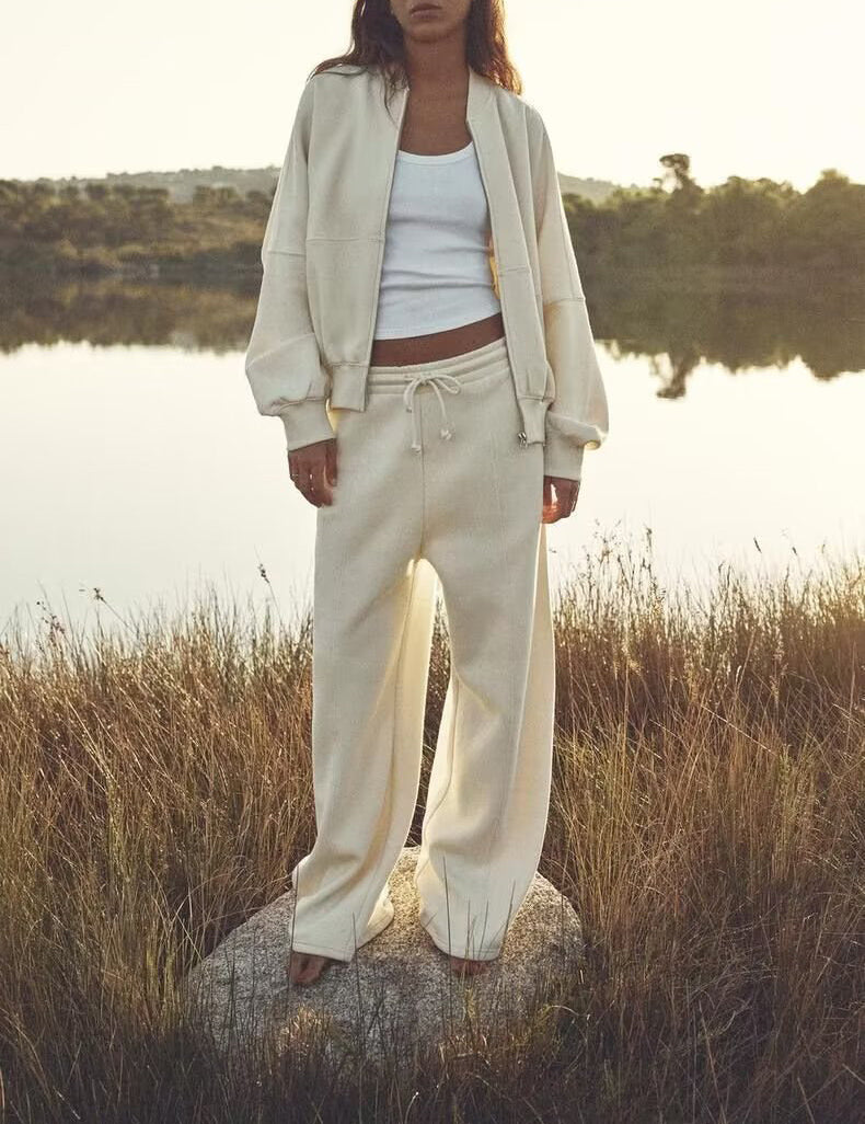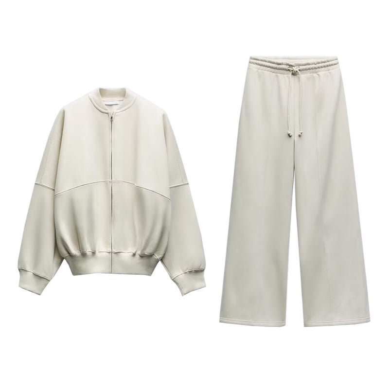 ZA Payız Yeni Fermuarlı Bomber Gödəkçə Sviter 3199802 Yüksək Belli Yun Şalvar 3199803