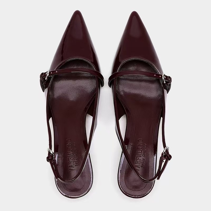 ZABA RAICIS Orijinal Dəri, Uclu Barmaqlı, Böyük Ölçülü Qadın Pişik Dabanlı Şərab Qırmızı Hündürdaban Ayaqqabılar - Endirim Endirimi