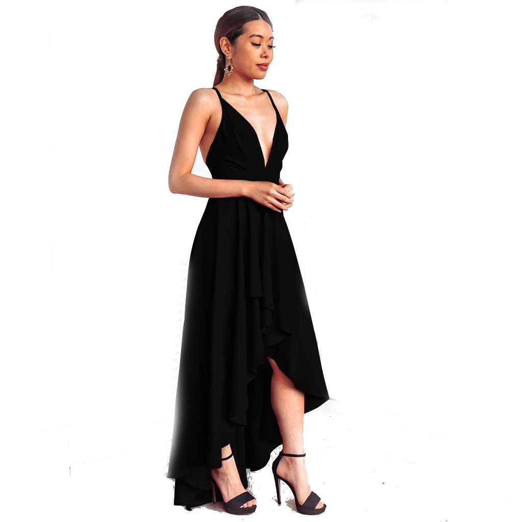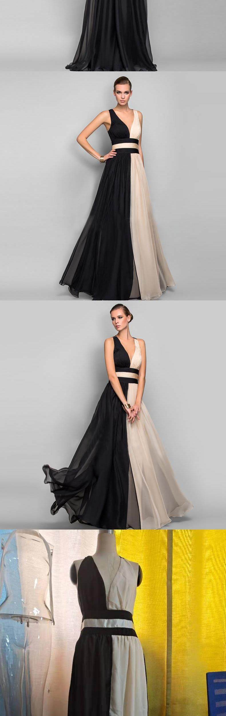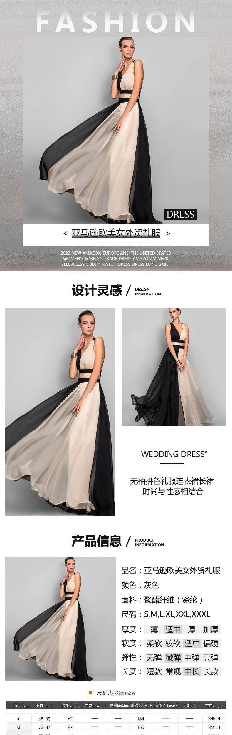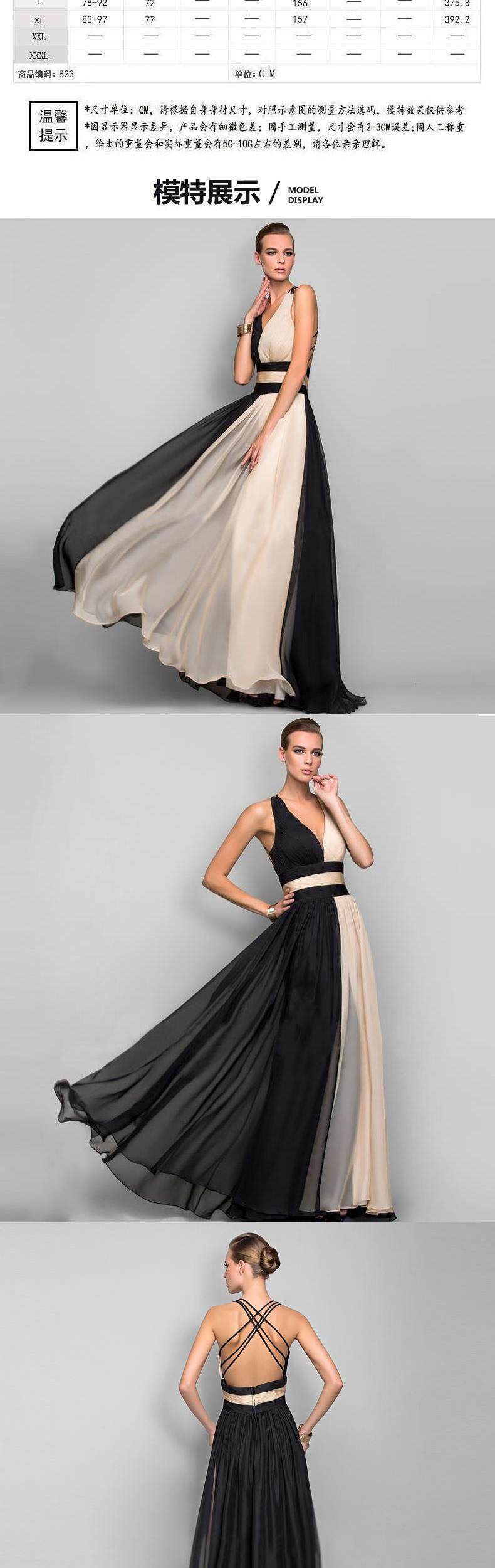 Ziyafət axşam donu, ixrac formalı rəsmi don, V-yaxalı qolsuz rəngli bloklu axşam donu, uzun ətək.